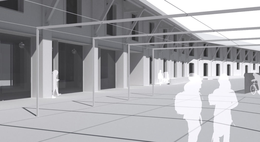 L’edificio esistente viene mantenuto per giacitura e volumetria con alcuni puntuali interventi che favoriscono l’integrazione dell’edificio nel tessuto urbano esistente verso nord e l’interazione con i futuri sviluppi del progetto “Porta Sud” di cui è in fase di perfezionamento un masterplan. Viene garantito il recupero funzionale e tipologico del fabbricato, mantenendo inalterata la configurazione volumetrica come da permesso di costruire rilasciato.